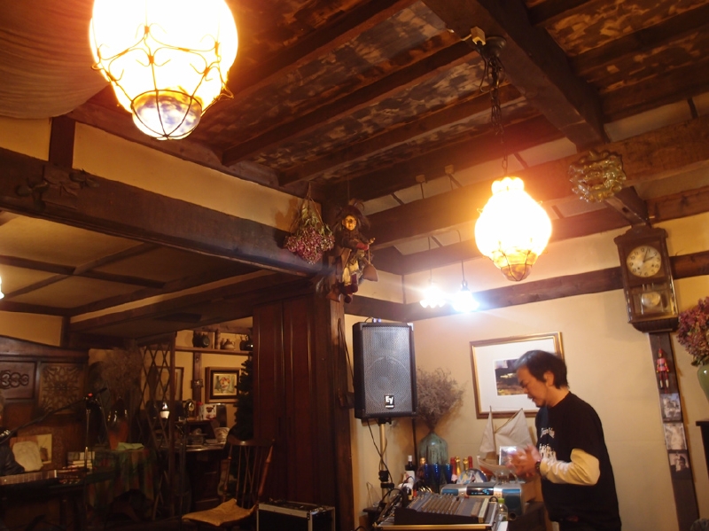 お客さんに囲まれライヴは始まり、鎌田さんが歌い出すと「きゃーカッコイイ!」という地元